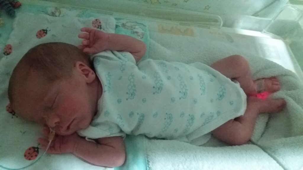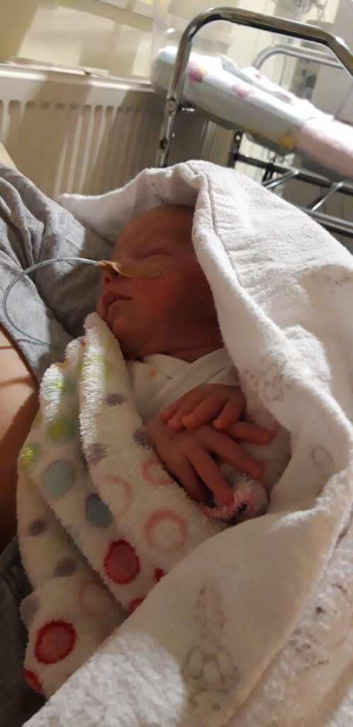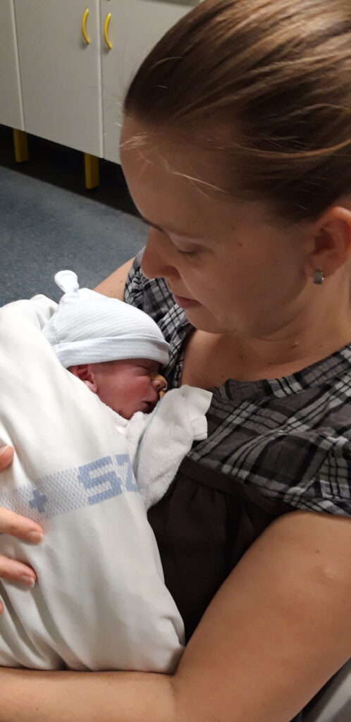Testközeli ismerkedések Anyával, megtörtént az első kengurúzás, majd az első etetés, majd a héten több alkalommal újra próbálás.