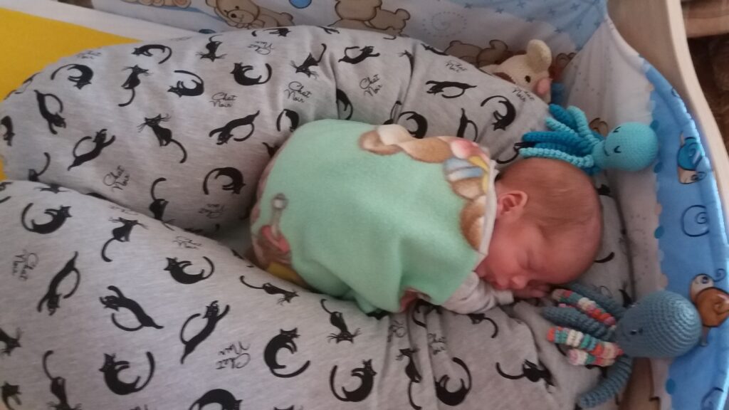 A terhes, szoptatós párnának is lett új funkciója. Ennek segítségével kicsit stéhen tudjuk fektetni és jobban alszik.