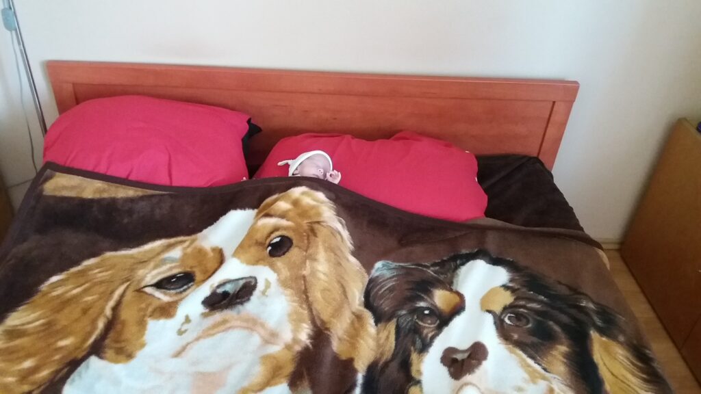 Ma aztán volt történés. Ma megint bejátszottam azt, hogy Apa elment itthonról Én egyből jelentkeztem Anyánál, hogy hahó én figyelemre vágyok. Egész délelött rajta csüngtem mert megnyugtatott. Sajnos hiába védte az ágyat akkor is befoglaltam az egészet alig maradt hely neki.