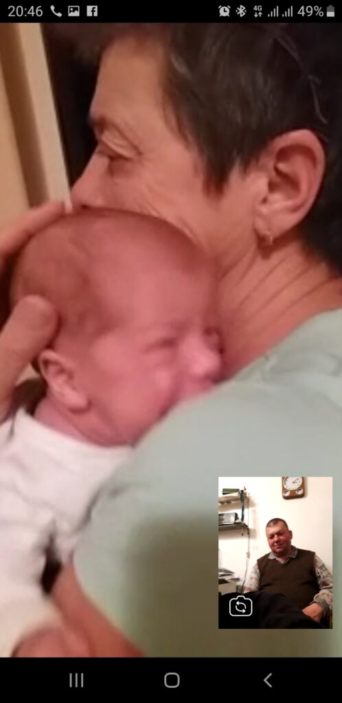 Az apukai ág kíváncsi volt ám rám mi történik. Illetve virtuálisan találkoztunk a nagypapival, video konferenciában. Éppen egy nyűgösebb időszakban találkoztunk.