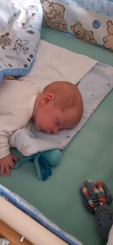Hajnalban menetrend szerint ébresztettem a szülőket. Állítólag Anya már elöttem felébredt és vissza zavart a start vonalra. Álmomban kicsit alva mászok és reggelre már az ágy végében talált meg. Így visszarakott a koordináta rendszer közép pontjában. Onnan találjam meg magamnak az irányt.