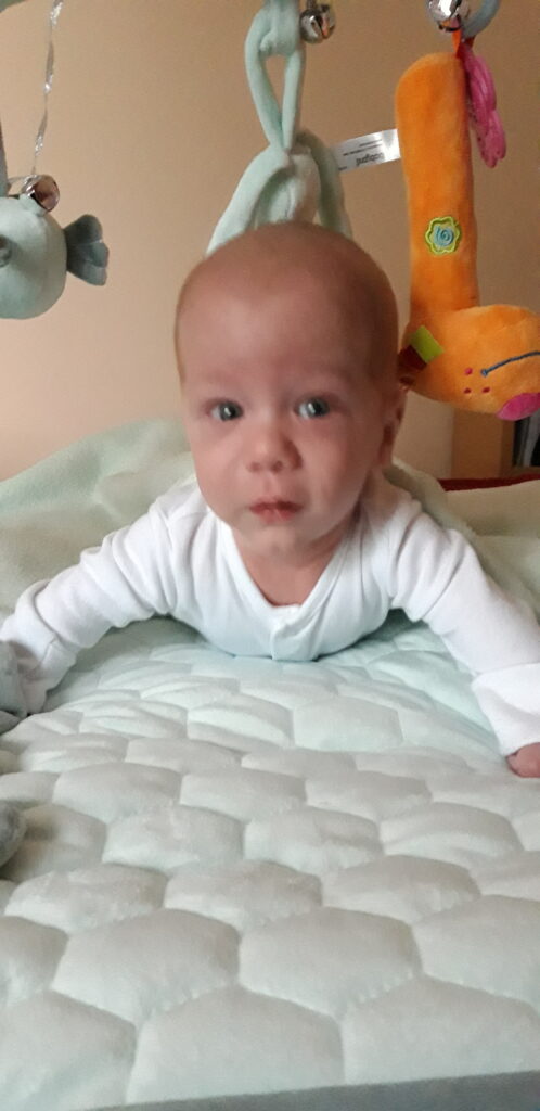 Pénteken napközben Zsuzsi és a Mami felügyelete alatt már kétszer is volt baba edzés mint reggel mint délután is. A délutáni edzés alkalmával már sikerült a másik oldalra is átfordulnia.