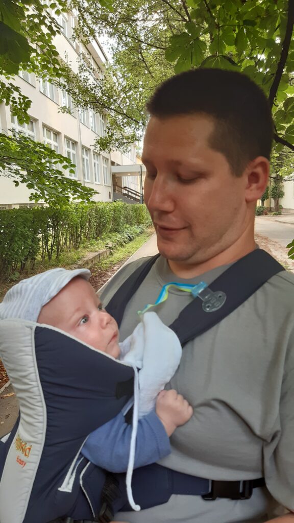 Ma Apa kengurú vitt engem délután. Kicsit össze kellett szoknunk a menetelésben mert eléggé darabosan ment. Egy idő után már alakult. még gyakorolni kell ezt a járkálást.
