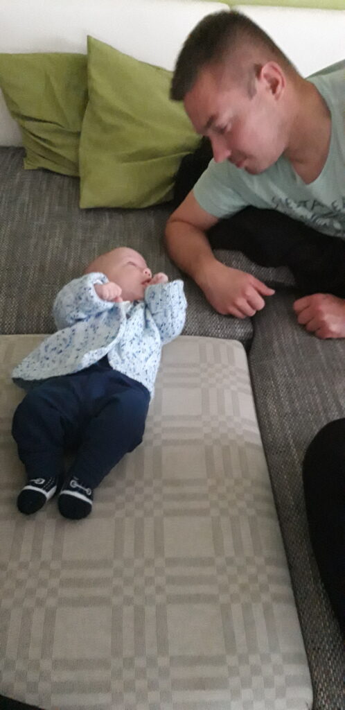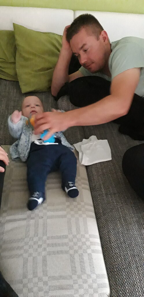 Délelött kicsit nyugodtan indult a napunk éjjel / hajnalban többször felkeltek hozzám a szülők mert állítólag pelenka akrobata vagyok és nagyon magam alá gyűrőm a párnát és vagy a kiterített pelenkát. Azt hiszik nem vettem észre, pedig de, mindíg amikor már majdnem eljutnék az ágy végébe akkor valamelyikőjük megfog és a start rajthelyre visszatesz. Valamit ki kell majd találnom, hogy ne olyan könnyen tegyenek vissza.