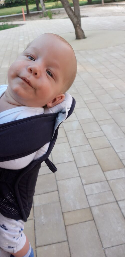 Délután jól bealudtam. Amikor felébredtem képzeljétek el nem a kiságyamba voltam hanem a játszó szőnyegen. Te jó ég a játszótéren aludtam el. Még jó, hogy senki sem pingált össze engem.