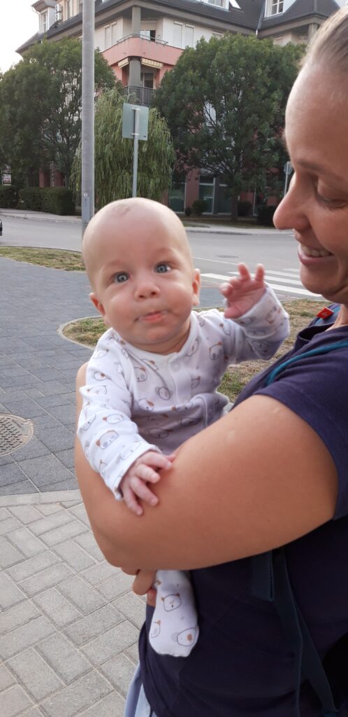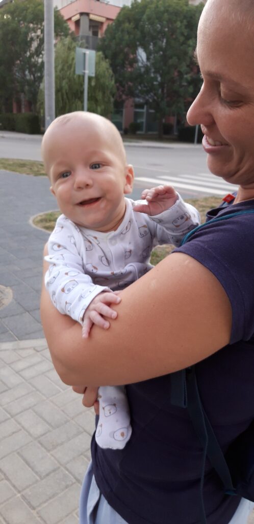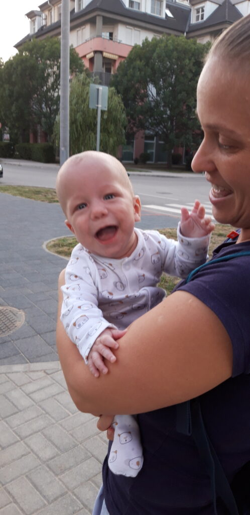 Szóval délután jót sétáltunk hazafele már kicsit nyűgös voltam, de Apa elkezdett velem bolondozni olyan kacagást levágtam csak öröm volt látni hallani. Anya is benne volt a buliba nála is mókáztam.