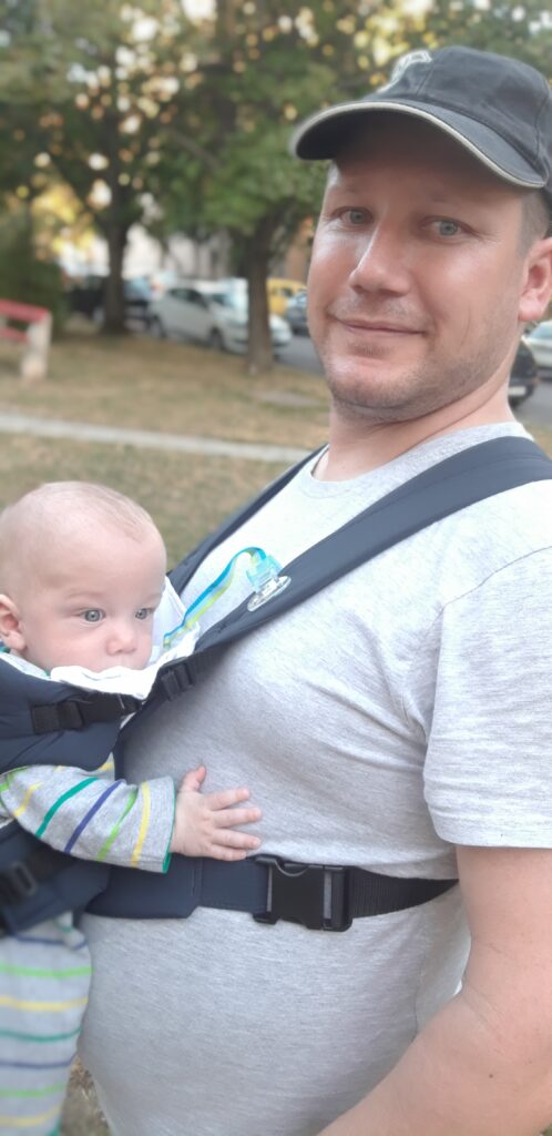 Elindultunk bevásárolni, én éhes lettem közben így mi Apával nem mentünk be, hanem kinn elfogyasztottam az adagomat. Utána jól be is aludtam. Visszaérve mi nem mentünk fel hanem a fák között kalandoztunk, míg Anya újra meg nem talált bennünket. Esti sétakört is letudtunk.