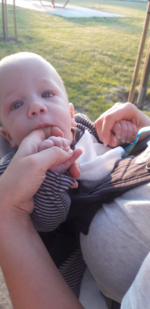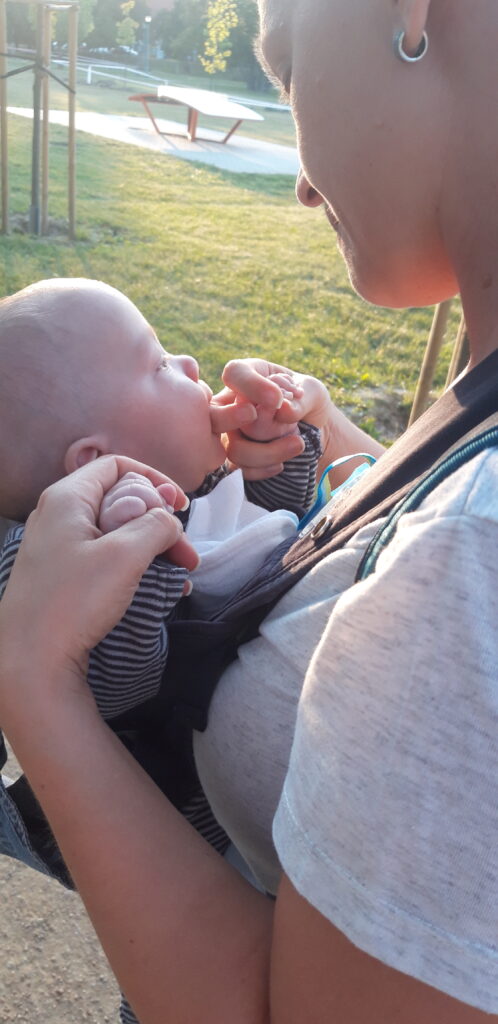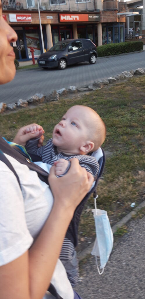 Így úri kényelmemet a személyzet a kézben való cipeléssel elégítette ki. Illetve az aktuális hordozómank el kellett viselnie a rágcsálásomat is. Ez a minimum kitétel a sétánál.