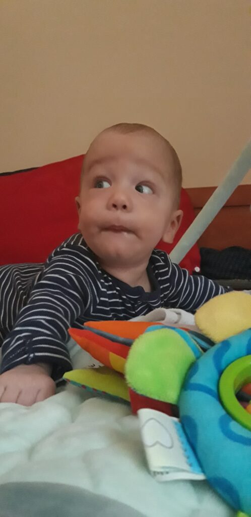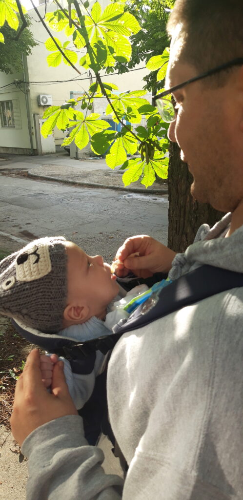 El is indultunk sétálni, szinte alig mentünk úgy megéheztem, hogy szinte az egész üveggel betoltam. A szülők azt várták majd kiüt engem ez az adag. De most komolyan?! Egy fél éves Petikének ez meg se kottyan.