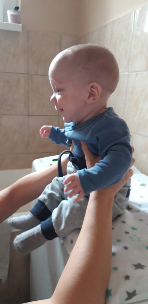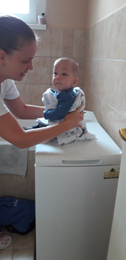 Nyűgös voltam, Anya próbált mindenfél ötletet bevetni, hogyan rázzon fel. Éppen kapóra jött a mosógép centrufugálása. Kicsit jobban mind gondoltam de a pelusomat megrázta rendesen.