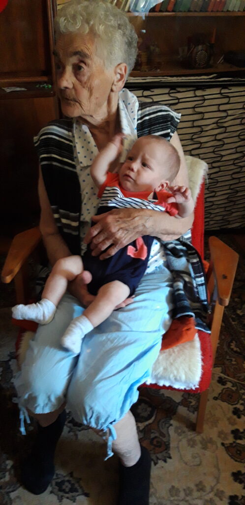 Délután a dédit látogattuk meg ismét. Jó volt nála bandázni. A teljes családdal levonultunk. Megmosolyogtattuk a dédit, először nem ismertem meg mert az a szürke valami a haján rövidebb lett. Biztos azért hogy közelebb menjek. Nekem nem gond, Apa / Anya közelebb vitt hozzá.