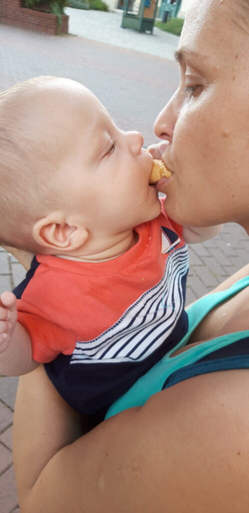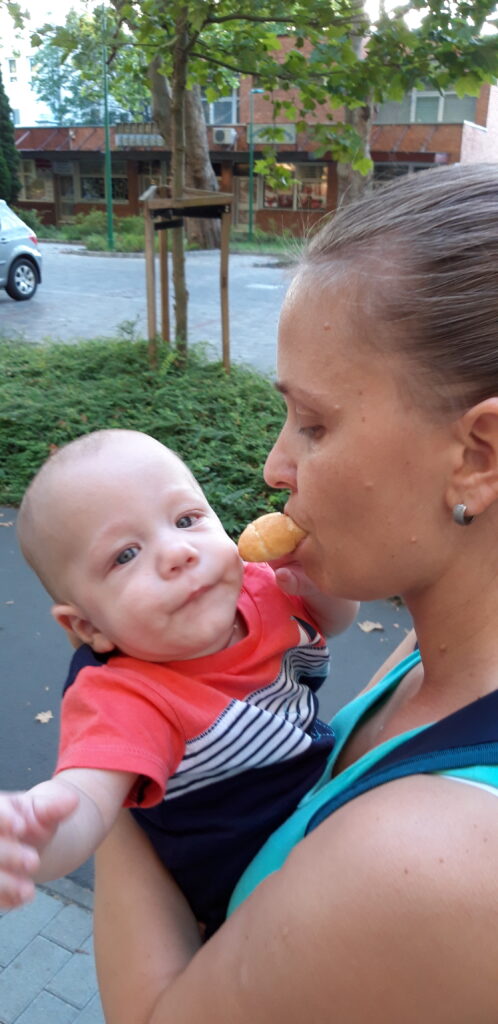 Reggel nem kis meglepetéssel előbb ébredtem mint a felvigyázók várták volna. Na ezzel teljesen felkavartam az álló vizet, és jót mosolyogtam rajta. Egész délelött kitartott a lendületem. A délelött margójára még megjegyezném. Egy óvatlan pillanatban mikor „állítólag” szülői jóváhagyást kapott a nagyi megkostóltatta velem a piros pürét. Nem volt rossz azt mondom. Egyből 3 kanállal be is toltam vele. Anyáékkal amikor indultunk volna akkor merültek le az elemek. Szóval bocsi, de most jót aludtam. Állítólag a megszokott 20 perces eltapos alvást most helyi rekorddal túl abszolváltam másfél óralett. Ismét meglepetés.