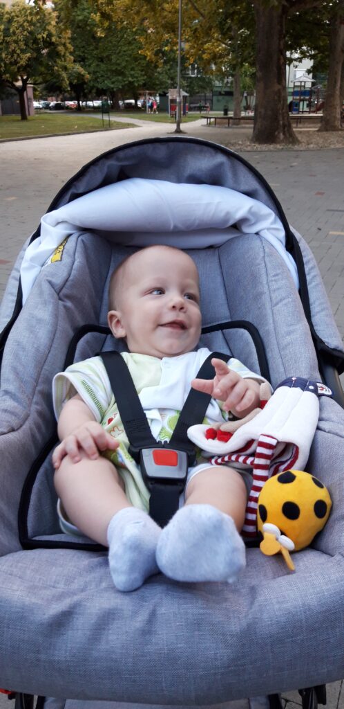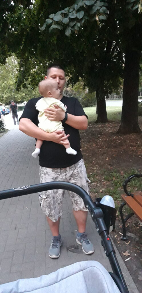 Délután megjött Apa és utána mehettünk csapatni. Elötte még az asztalnál rágyúrtam egy kicsit. Jó hír már önállóan fel tudom emelni a kanalat ha a kezembe kerül. Na jó kicsit tudatosan meg is tudom markorlni.