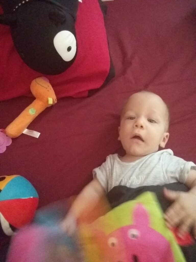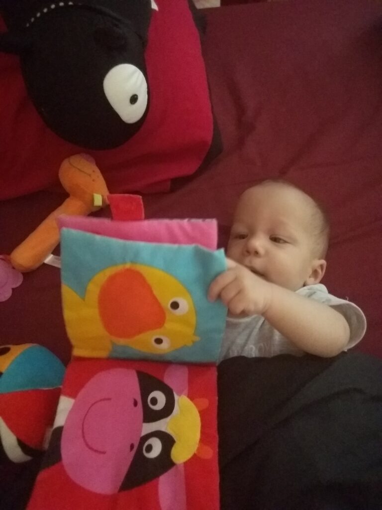 Szóval ma délelött Anyával elmentünk üzletelni, egész jól sikerült még pelusra való pénzzel is gazdagabbak lettünk. Ettől annyira elégedett lettem, hogy el is aludtam. Ébredés után a konyhába rendet raktunk én vezényeltem. Ez nem kis munka volt, annyira nem hogy össze is csináltam magam. Ez már csak a méteres szagról érződött. Na volt is tisztálkodás. Aztán a délután további részében a szabadságot választottuk így a játszó szőnyeg fölé vízzáró réteget varázsolt Anya és azt én már bűntetlenül megkeresztelhettem.
