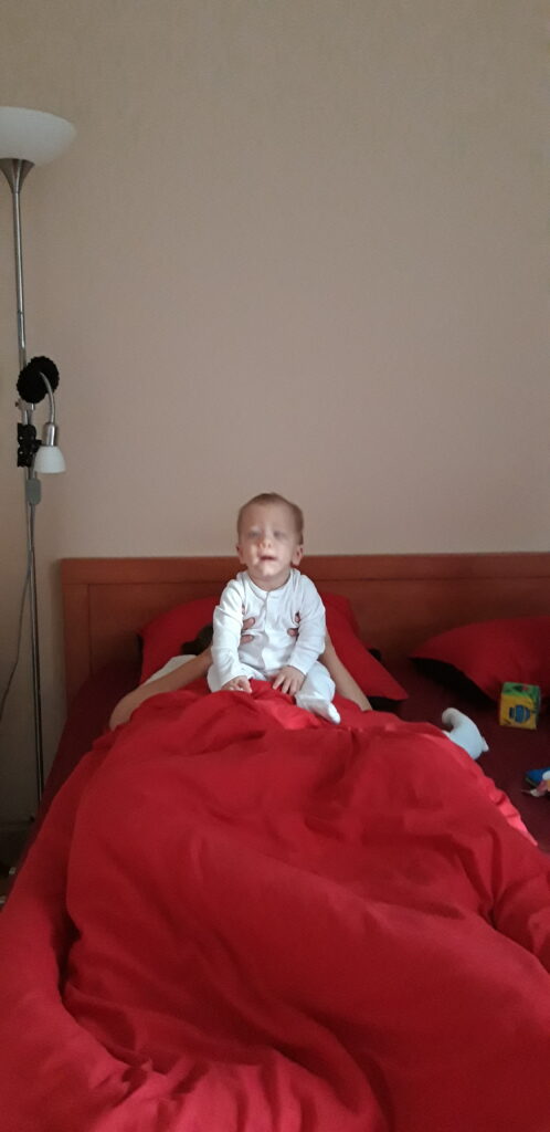 Reggeli után Anyával birkóztunk. Mivel legyőztem így elfoglaltam a szülői ágyat.