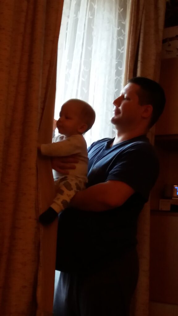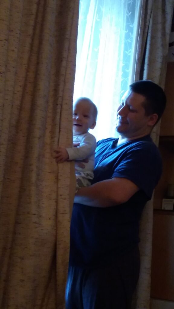 Reggel még mindíg voltak kilengések a biológiai órában, így kicsit korábban kelltem fel. Szinte be is toltam a teljes reggeli adagomat. Viszont nem sok kedvem volt vissza aludni. Így Apával rosszalkodtam a függőnnyel játszottam.