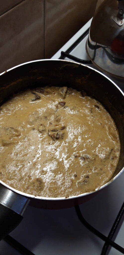 Délben éppen kész lett az ebéd Apáéknak, az ebédje így én is bele kóstoltam. Tetsztett, így bele is karmoltam jó adagot. Állítólag valami májat ettem. Nem tudom de finom puha volt így legközelebb is benevezek rá.