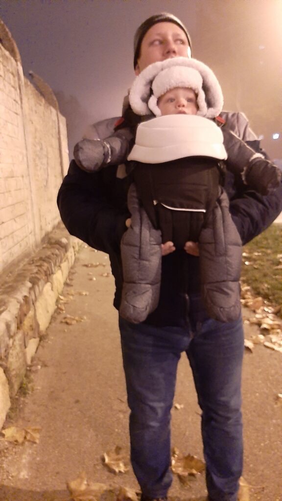 Délelött, próbáltam bepótolni a kimaradt reggeli adagot, így a gyümölcs pürét be is húztam. Aztán jó nagyot sétáltunk Anyával. Teljesen jó volt a friss levegőn aludni. Bár nem tudom ki nyitotta ki a tejes üveget, vissza is csukhatta volna mert nem láttunk szinte semmit.