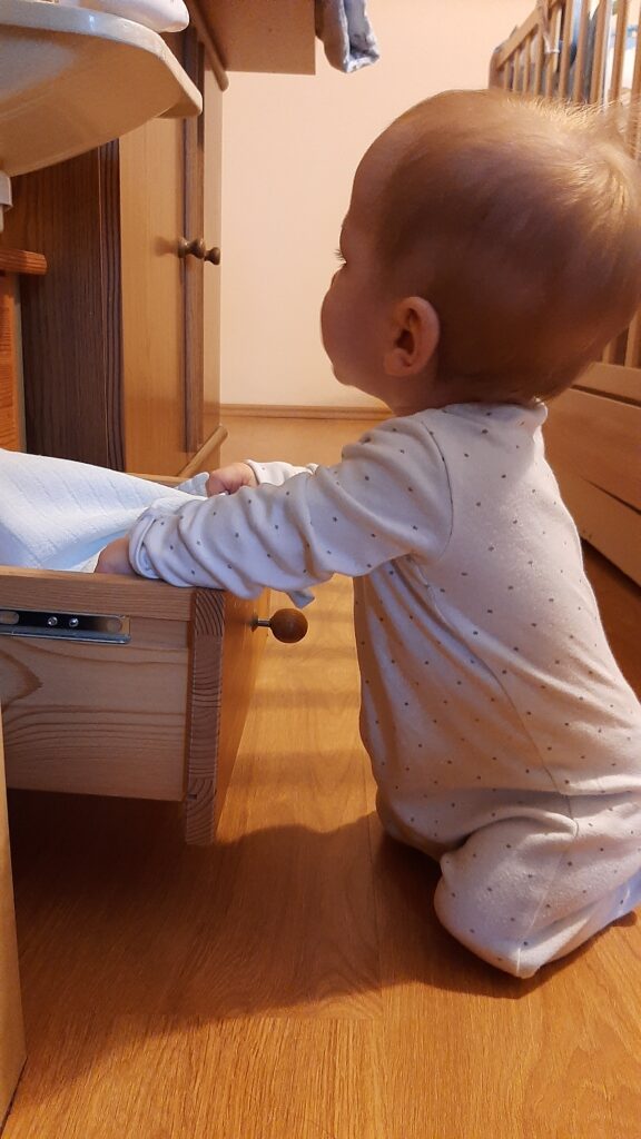 Ma reggel a hétvégére valót tekintettel kegyet gyakoroltam és én sem akartam korán felkelni. Ébredés után tekintélyes mennyiségű kaját tűntettem el ami után jó nagyot aludtam. Ébredés után már tele voltam energiával így gyakoroltam a fiók kihúzást. Na innentől kezdve jó móka lesz rendet tesztek mindegyik fiókba. Sőt megkóstoltam a fiók gombot is, nem a legjobb gomb amit már ettem de elmegy tízóraira.