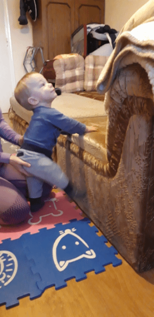 Délelött annyi energia volt bennem , hogy már önállóan folyamatosan el tudtam menni a talajtorna szőnyegemtől egészen a szölök szobájába. Volt én öröm és meglepődés. Ezen tettem után valami nagy készülődést történt, állítólag mindent egy szintttel feljeb kel most már rakni.