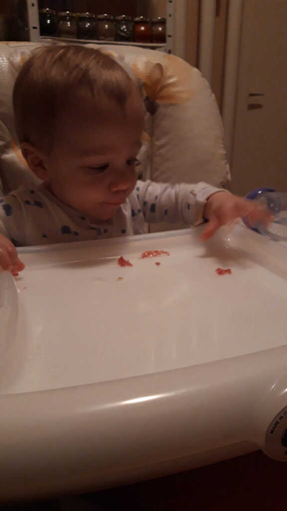 Reggel még szinte sötétbe ébresztettem a szülőket én már átaludtam az éjszakát de éhes vagyok. Így korán lett a reggeli. Be is toltam egy jó adagot, viszont az álom manók csak nem akartak előjönni.