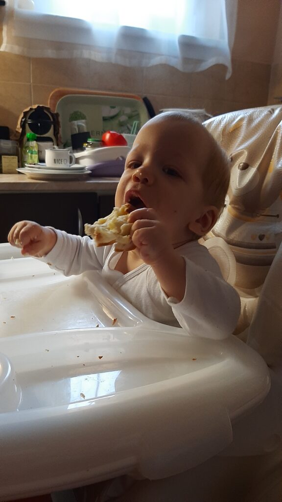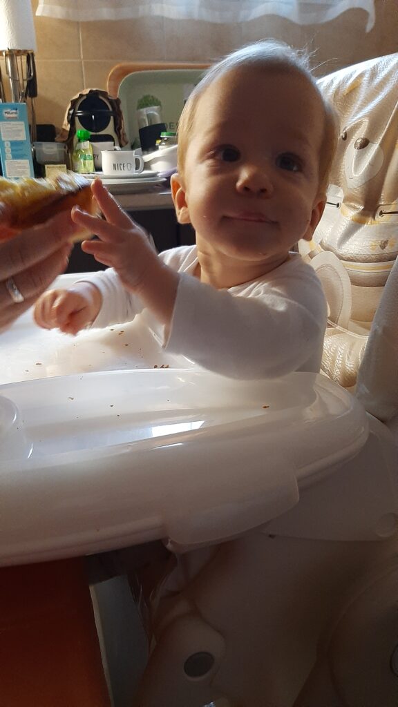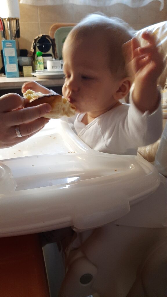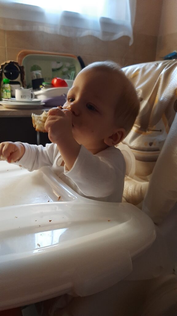 Reggel korán már nagyon korgott a pocakom ezért riasztottam a szülőket, nekem azonnal hadtáp ellátmány kell. Bele is csaptam rendesen. Majd jól vissza aludtam. Azért a szülők reggelijéhez és is helyet kértem. Nem is értem miért adnak nekem csipeteket, hiszen én már harapni is tudok, ha akarok. Bizony bizony egy jó túrós szív mindíg jól esik.