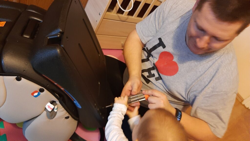 Délelött a móka és kacagás, mellett komoly tanulás is történt. Apa és Anya összerakták nekem az új fotelemet amit a verdánál fogok használni. Volt egy kis technikai probléma de megoldottuk. Amúgy meg besegítettem a szét és össze szerelésben. Jól megnéztem hogy a fater meghúzta-e rendben a csavarokat.