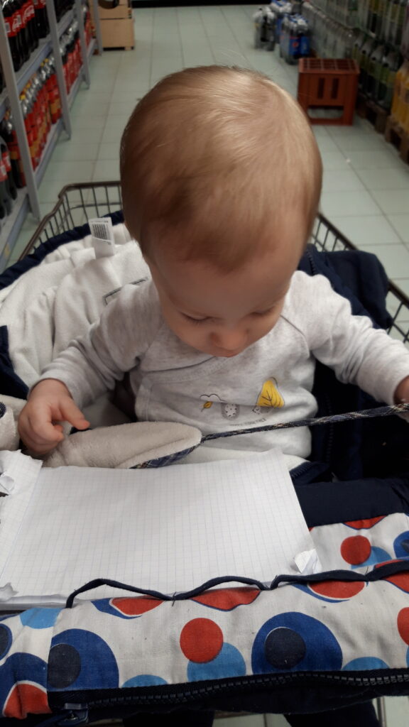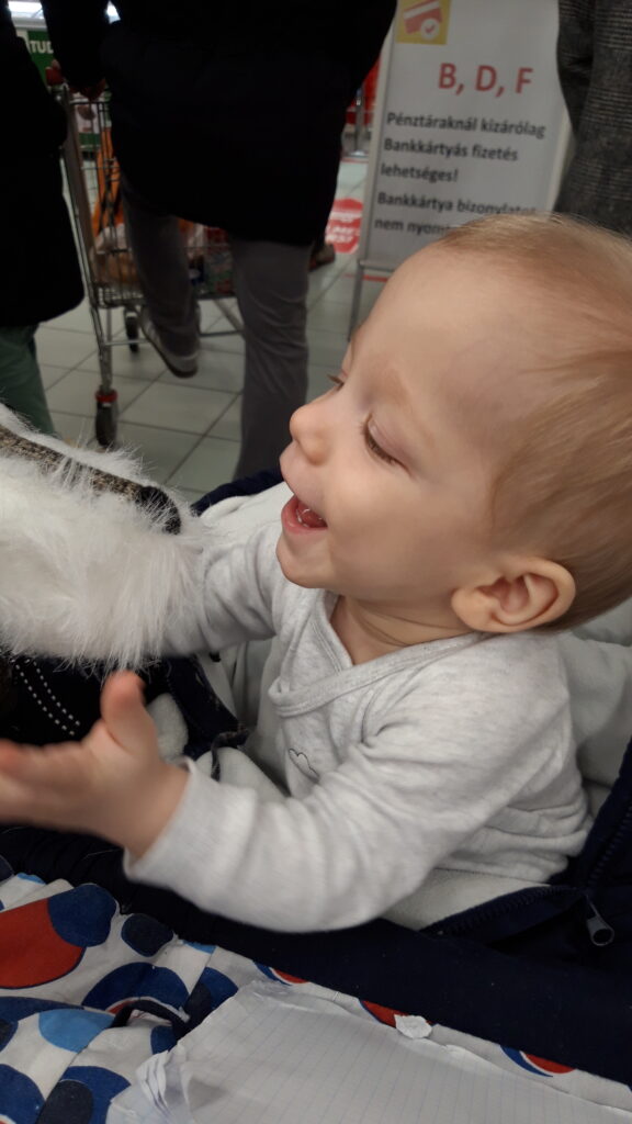 Késő délután Apa karitatív munkát végzett, mi meg figyeltük. Egy idő néninél a világító dobozt bűvölte. Amíg vártunk addig felfedeztem, hogy vannak szárnyas jószágok a kaickába érdekes figurák voltak. Hangot is adtam a tetszésemnek.