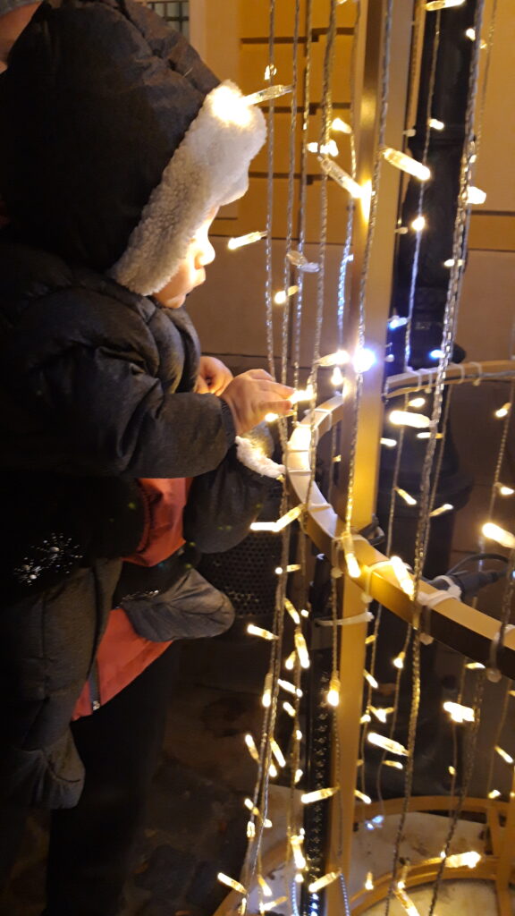 Jó nagyot kerültünk. Sok fényes dolgot láttam és sokkal nagyobb karácsonyfát mint ami itthon van. Tény, hogy azt nem szabad annyira megabajgatni mint az itthonit, és a díszek se olyan szépek mint itthon.