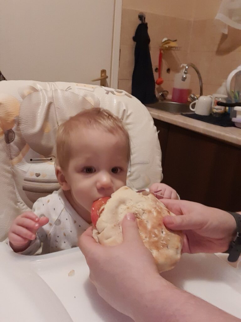 Estére ismét kicsit sétáltunk, begyűjtöttük a kaját. Vacsorára krumplit túrtam be. A nagypapi is nézte hogy eszek.