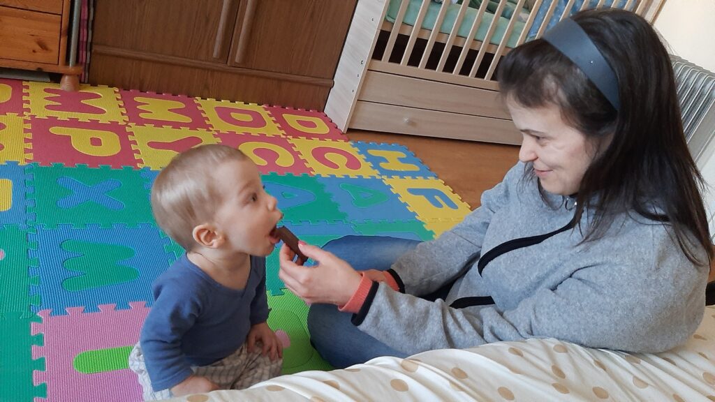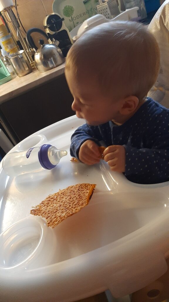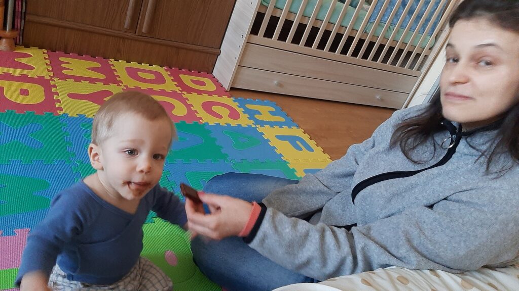 Csütörtökön már egész nap hölgy koszorúban voltam Anya melett itt volt a nagynéni is. Hajnalan csintalankodtam mert korán ébresztettem a szülőket, aztán jól elbántak velem mert víz helyett kajéval lett kitömve a pocim utána már rendesen aludtam. Amúgy reggel útjára bocsáltottam Apát had keresse a pelus pénzt. Én meg kértem a reggelit. A krémtúrót nagy meglepetésre 3 perc alatt betoltam. Na mondanom sem kellett volt ám meglepetés. Utána kicsit szusszantunk. Majd megmutattam Anyának hogyan szerelje fel az ajtózárat.