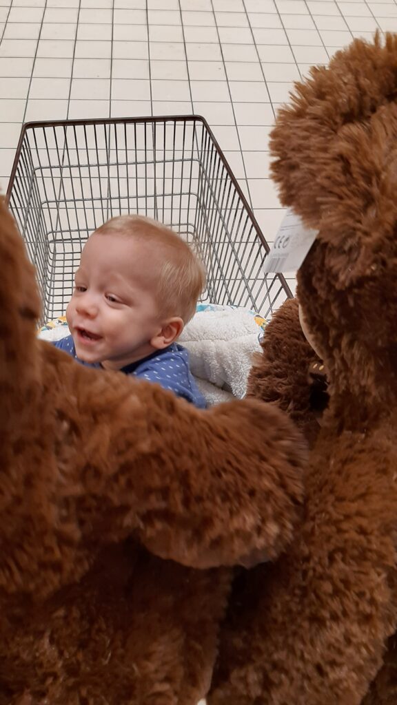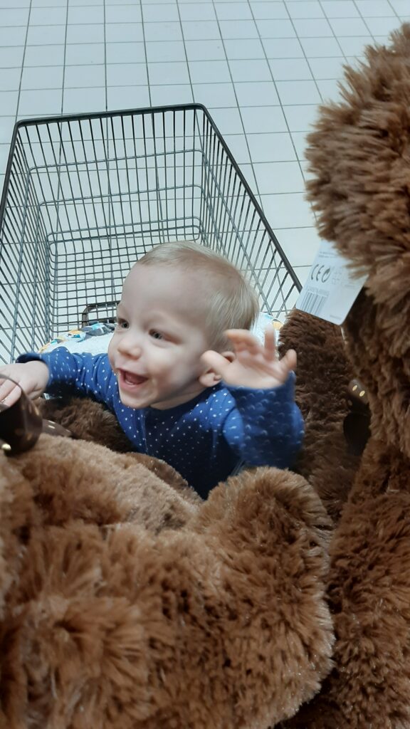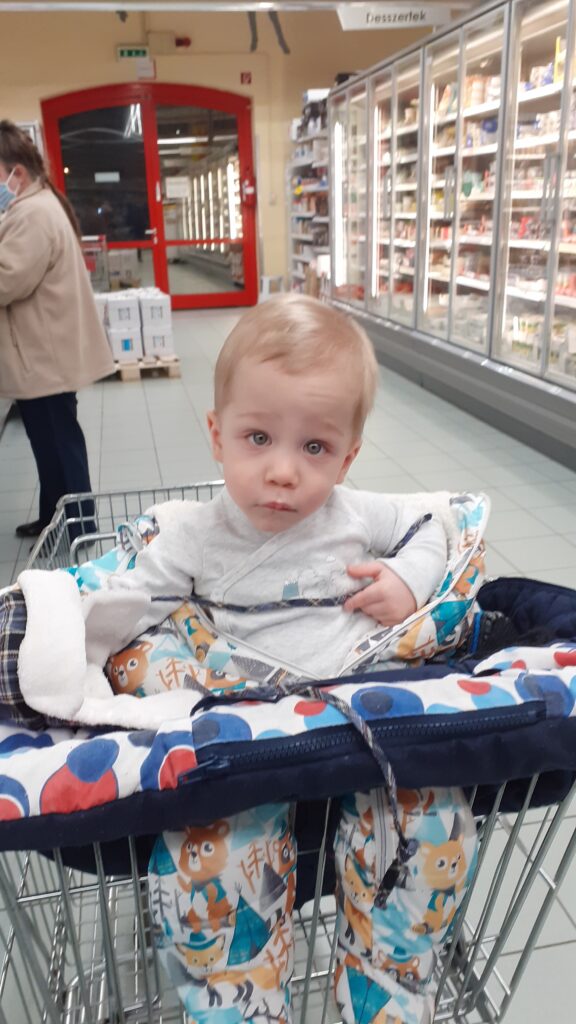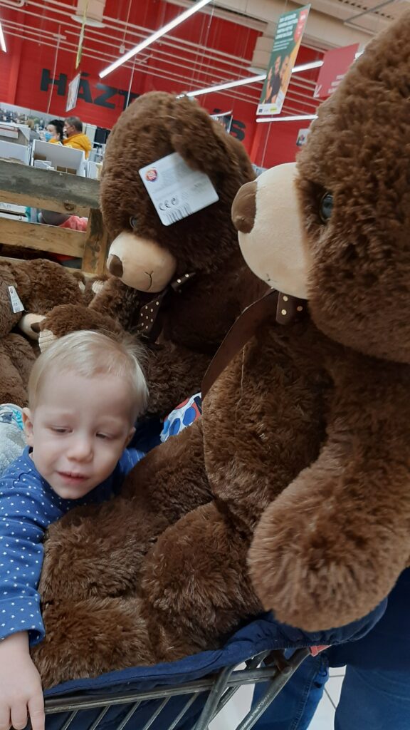 Délelött jókat mókáztunk itthon, majd egyszer csak elfáradtam. Apa próbált elaltatni de nem engedtem neki nekem Anya kellet. A megszokott deles pihenés kellett nekem is. Délután mókáztunk egyet, majd elindultunk bevásárolni. Persze nekem is csurrant cseppent egy két dolog. Amúgy egész jó volt ez a evásrlásos dolog. Partiztam a mackókkal, és nyárra kerestem sapit magamnak.