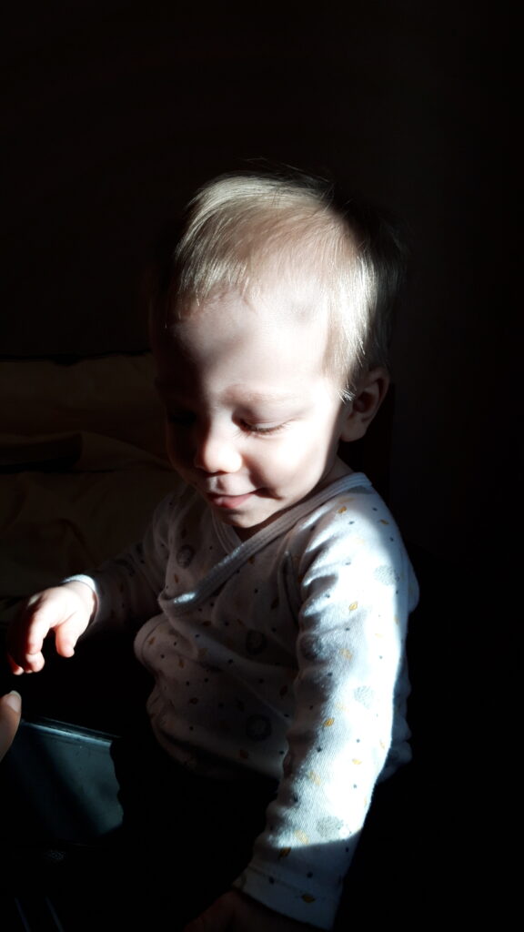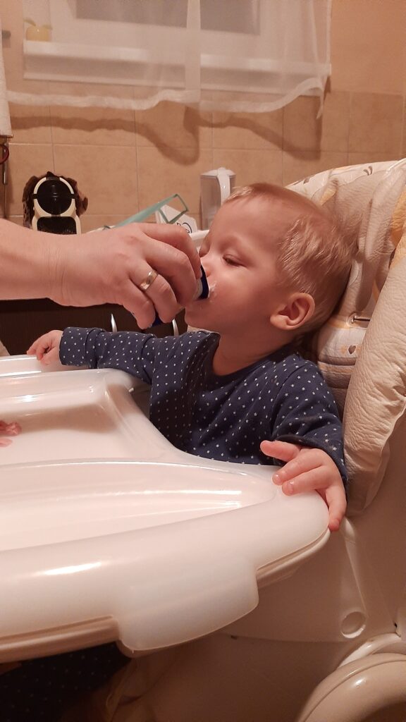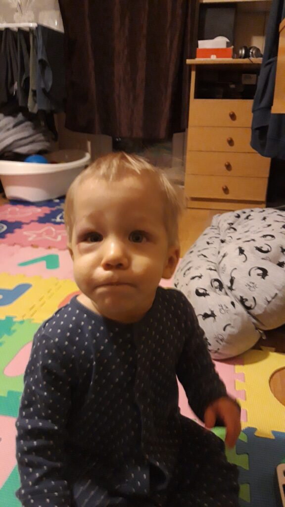 Kedden hajnalban jelentkeztem a hadtáp ellátásomért. Egyből be is zúztam az egész adagot, így reggelig ki is bírtam. Délelött jó nagyot játszottunk, megvártuk míg eloszlik a köd és csak akkor merészkedtünk ki egy kicsit bevásásrolni. Délelött hazaérve rácuppantam a játékaimra, azokkal elvoltunk. Jól ki is fáradtam egy nagy alvással átdotam magama délutánba. Ébredés után nem voltam annyira éhes de megpróbáltak valamennyit belém tolni. Délután a labdákkal és a verdával elvoltunk. Majd Apa is hazaért és korábban elmentünk sétálni. Séta közben az áfonyás tejpépit e is toltam innentől fogva nem volt problémám. Míg vártunk Anyára addig haverkodtam a kutyussal. Ilyennel sem találkoztam a kutyus félt tőlem, pedig nem akartam tőle semmit csak megsimogatni. Hazafele már kicsit nyűgös voltam, de vártam már a vacsorát, a virsliből vermeltem el egy keveset a vésztrhesebb éjszakai időpontra. Sajnos Anya észrevette, így a muníciómank lőttek. Fürdés után elkapott az álmosság, de csak Anyán voltam hajlandó elaludni. Teljesen készen vagyok. megyek is aludni. Szép állmokat.