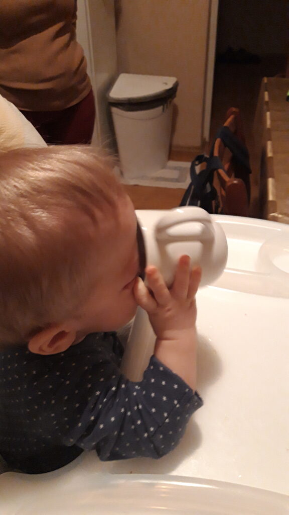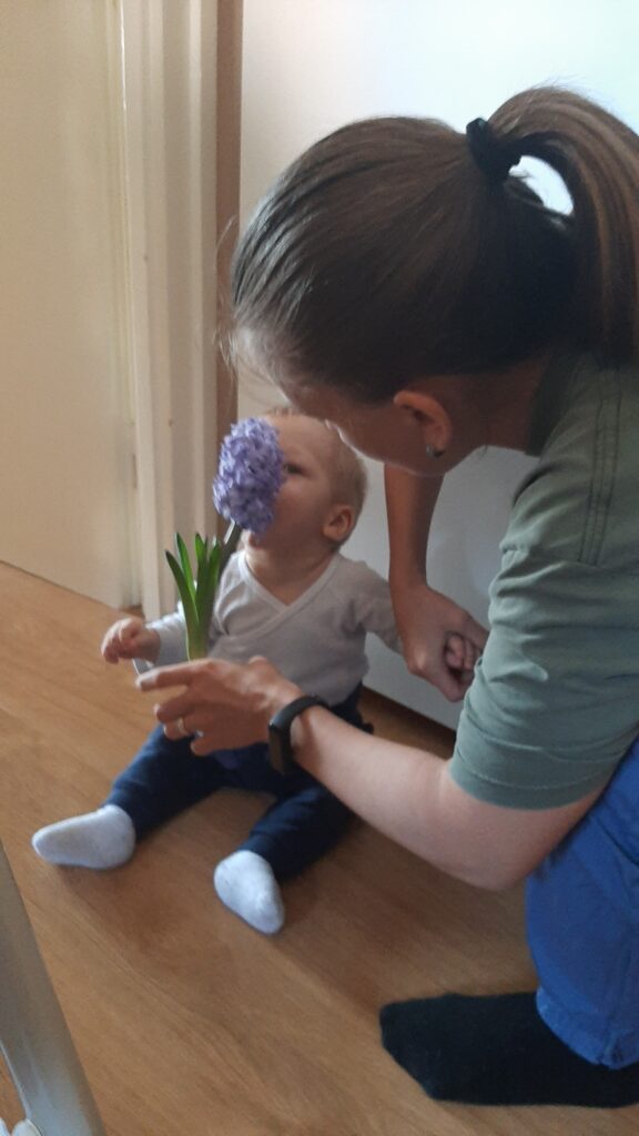 Délelött komoly munkában voltam. Valami mindíg utánam pakolt olya nagy munka volt mindent kipakolni újra. Délben már kezdtem kicsi éhes lenni, de most a gyümölcs püré nem nagyon hozott lázban. Helyette fonom levest ettünk Apával. A végére már kicsit álmos voltam jó nagyot aludtam. Ébredés után ismerkedtem a virágokkal.