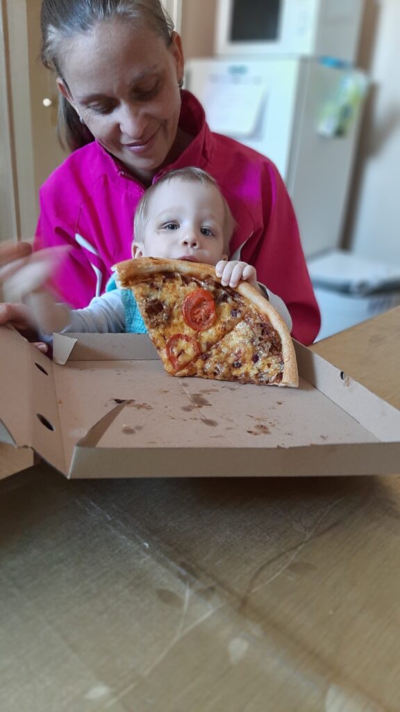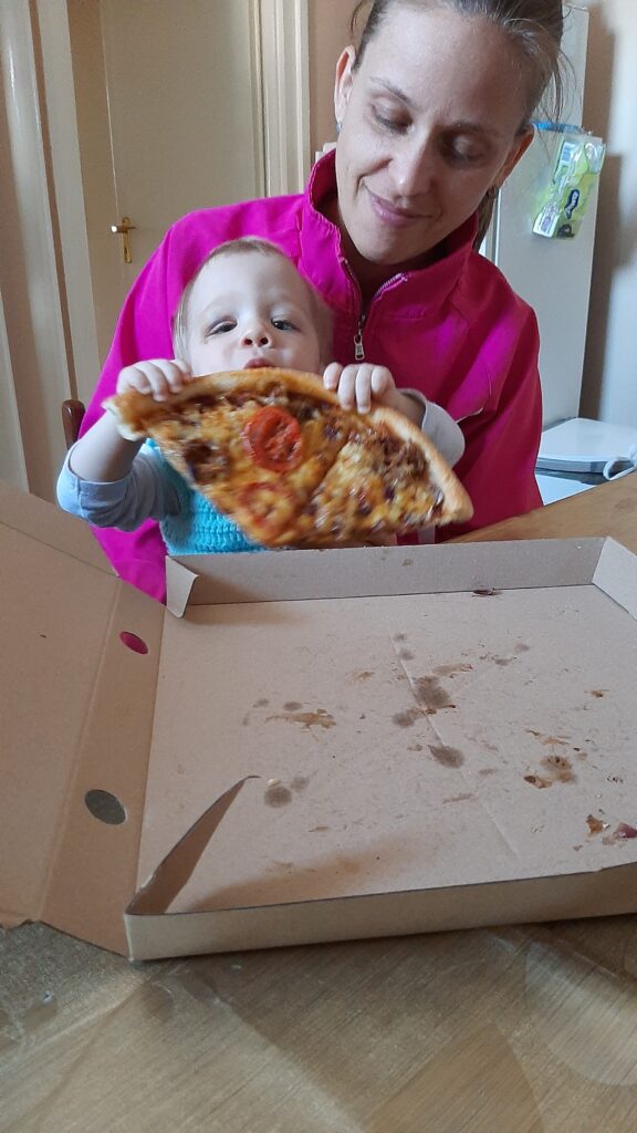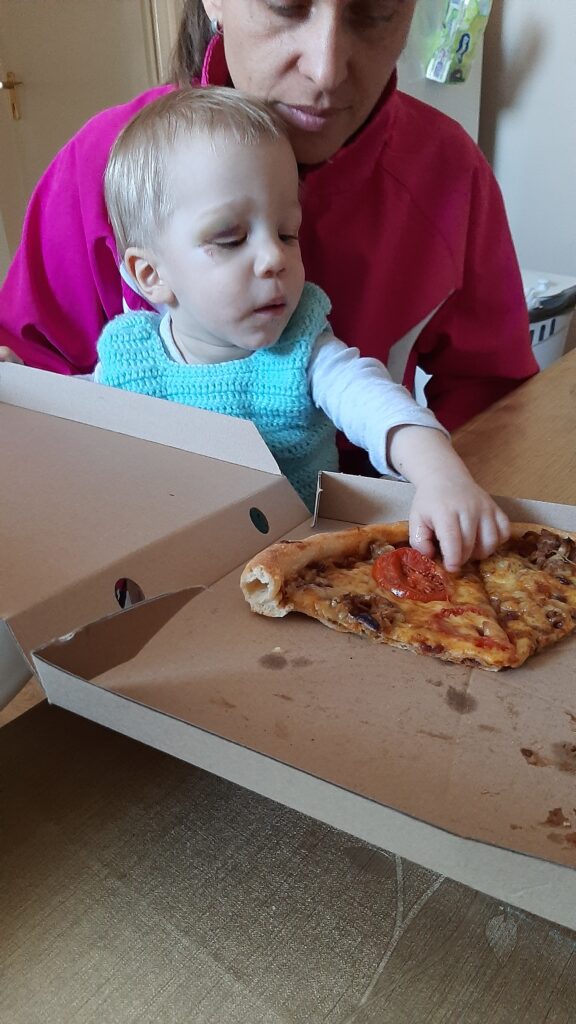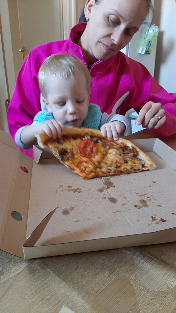 Délelött nyakunkba kaptuk a várost elintéztünk pár dolgot és vásároltunk is. A többire már nem emlékeztem, mert út közben jól esett a nap simogatása és a kocsi is elringatottt engem. Ohh mire felébredtem már kész is volt a fiom leves. Apa toljad rendületlenül, én nyomom magamba. Az ebédemet a kapu csengő zavarta meg. Soha nem fogom megszokni, ennyire ilyesztő hangot. Szóval éppen időben érkezett meg a szülők ebédje is. Apa pizzájára majd Anya desszertjére raboltam rá. Így teljesen jó menüt ettem végig.