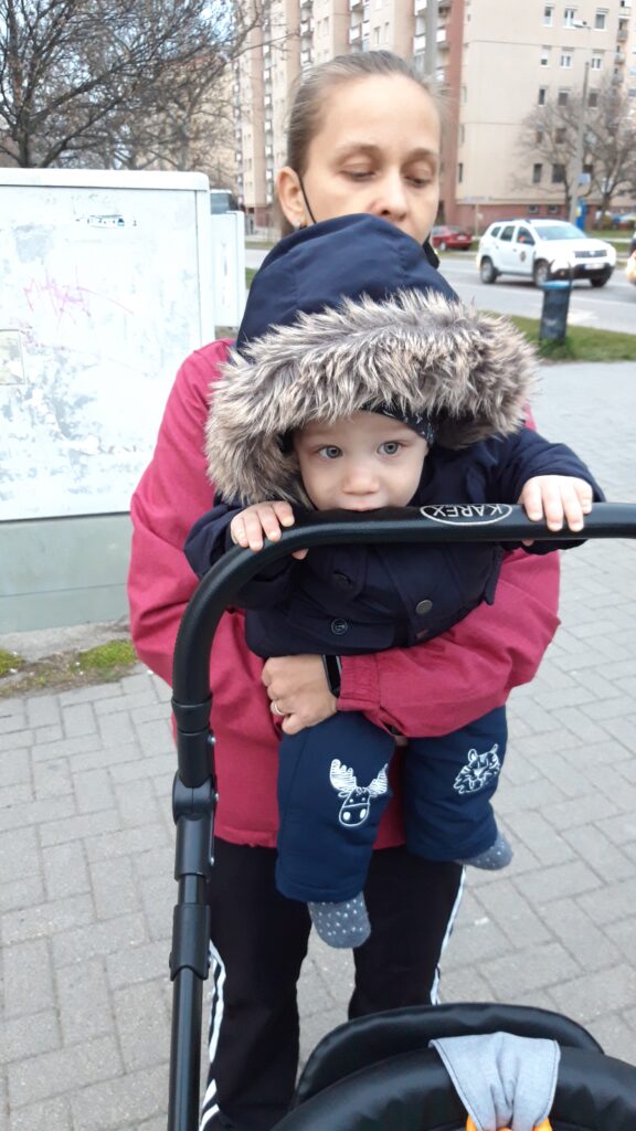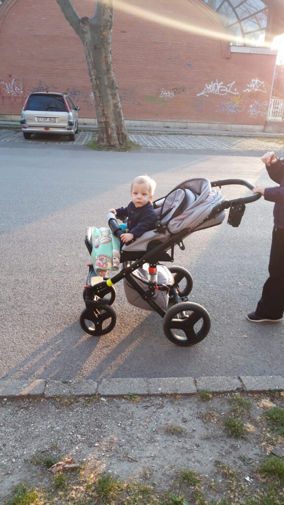 Hétfő, hajnalban korán ébredtem fel majd a szülőkhöz társultam velük aludtam egy jó nagyot. Délelött még nyűglődtem egy kicsit majd aludtam egy nagyot. Az esti sétánál most én toltam a verdámat.