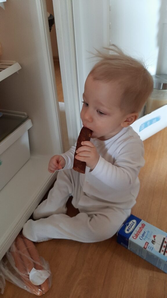 Kedden délelött benéztem a hűtőbe és mit találtam egy kolbász darabot. na nem lehetett kihagyni.