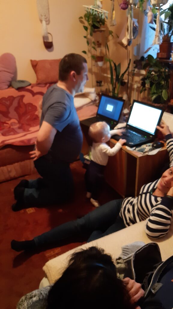 A hosszú útnak csak a végére értünk. Már éhes is volt szerencsére a sülkrumpli adagot megkaptam így már jól bírtam az út további részét. Jól megleptük a negyit. Robogott is elénk. Úgy néz ki pár napra ide jöttünk héderezni. Délután ismerkedtem a lakás cirkáló kutyussal. Egészen jó haverságba kerültünk. mind a ketten érdeklődtünk a másik iránt. A dédit is meglátogattuk. Majd estére én is beálltam dolgozni Apával. Komoly munka volt egyszrre kát gépet püfölni.