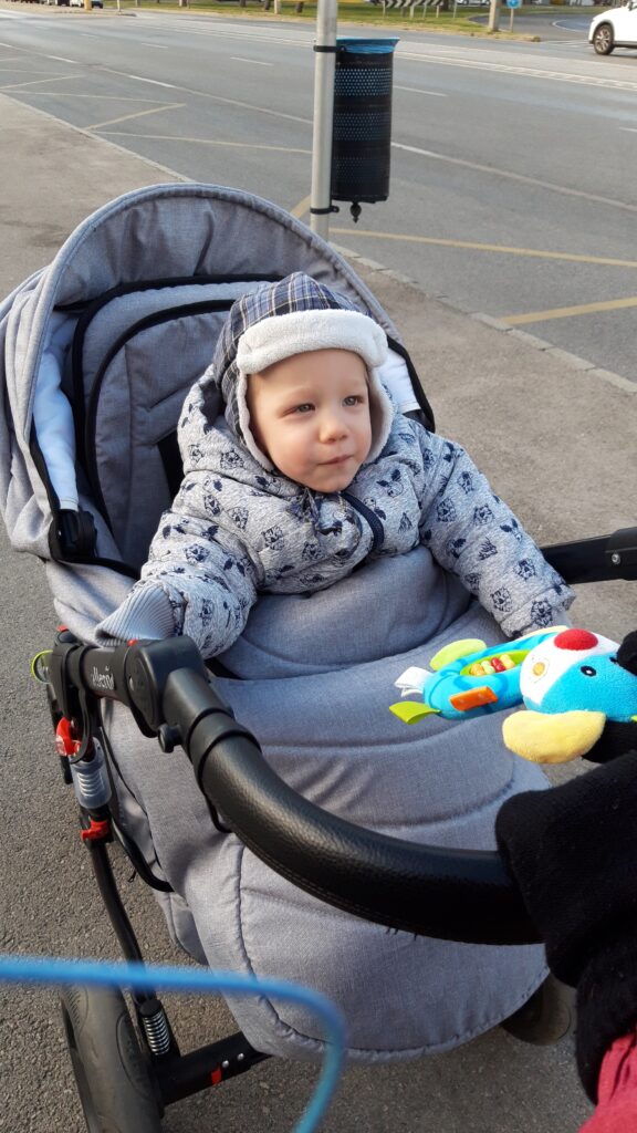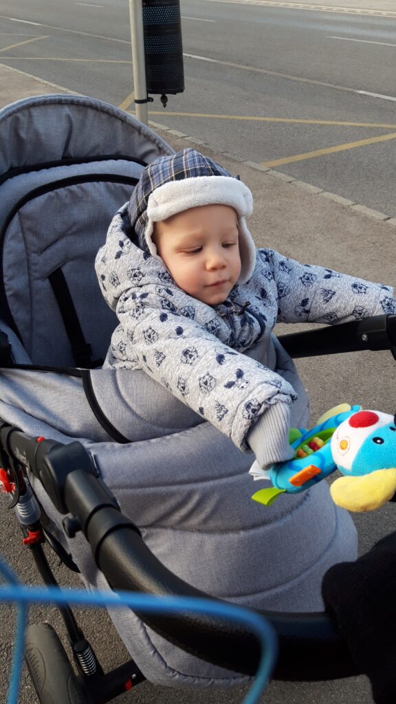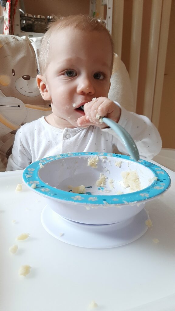 Szerdán Apát elküldtök a dolgozóba, addig mi nap közben elindultunk hadi készlet felhalmozásásban. Jó sok ételet vettünk nekem. Ezek már nem holni kis babaának valók kérem szépen sikerült az egy éves kór felettire beruházni. A bevásásrláskor végig sikkangattam az üzletet, így segítettem a biztonsági őr bácsinak, hogy nem kell másik irányba nézelődnie, mert én hangjelzéssel tudttam merre járunk . Cserébe a vásárlás végén megengedték hogy az áruházi verdát odatoljuk a mi verdánkhoz. Jól kimultattam magamat, délután aludtam is rá egy hatalmasat. Ebédre a nagyitól jött hadi készletet dézsmáltam meg egészen bejött ez a tört krumpli. Sőt ezt már én a kanalammal ettem.