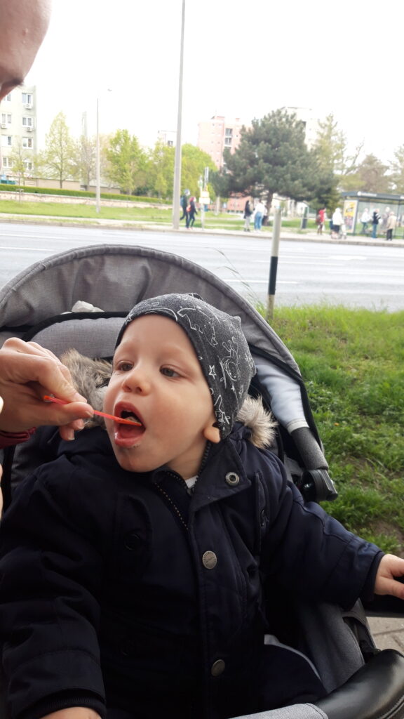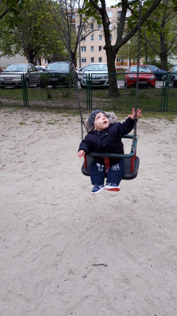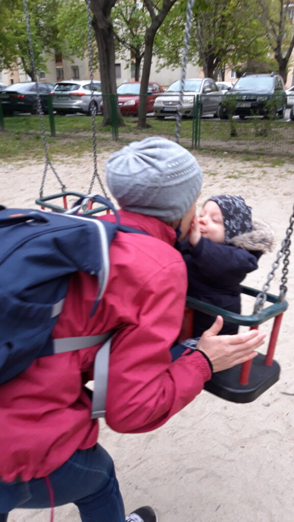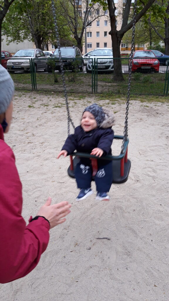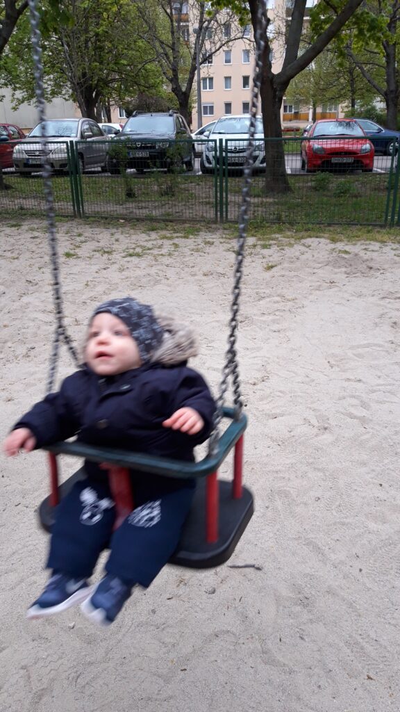 Hazaérve egy kicsit próbáltam aludni de nem ment, majd Apával is próbálkoztam, előbb majdnem Ő aludt el mint én. Ebéd után már nem voltam annyira nyűgös. Anya az Anyáknapjára nem virágot hanem sütit kért. Szeretem az ilyet mert akkor nekem is csurran csöppen finom falat, gondolnak rám is. Ebédnél is rendesen kidologztam magamat ismerkedek a kanállal való evéssel. Ebédre megkostóltam a halat is, nem volt rossz, de valami más húst jobban szeretek. délután nagy munkába voltunk rendbetetttük a lakást mert a jövő héten vendégeket várunk és előkészültünk pár dologgal. Én is rendesen besegítettem. Délután aztán a nagy takarítás után Apával elindultunk sétálni csatlakozott hozzánk Anya is. Nem maradhatott el a hintázás sem.