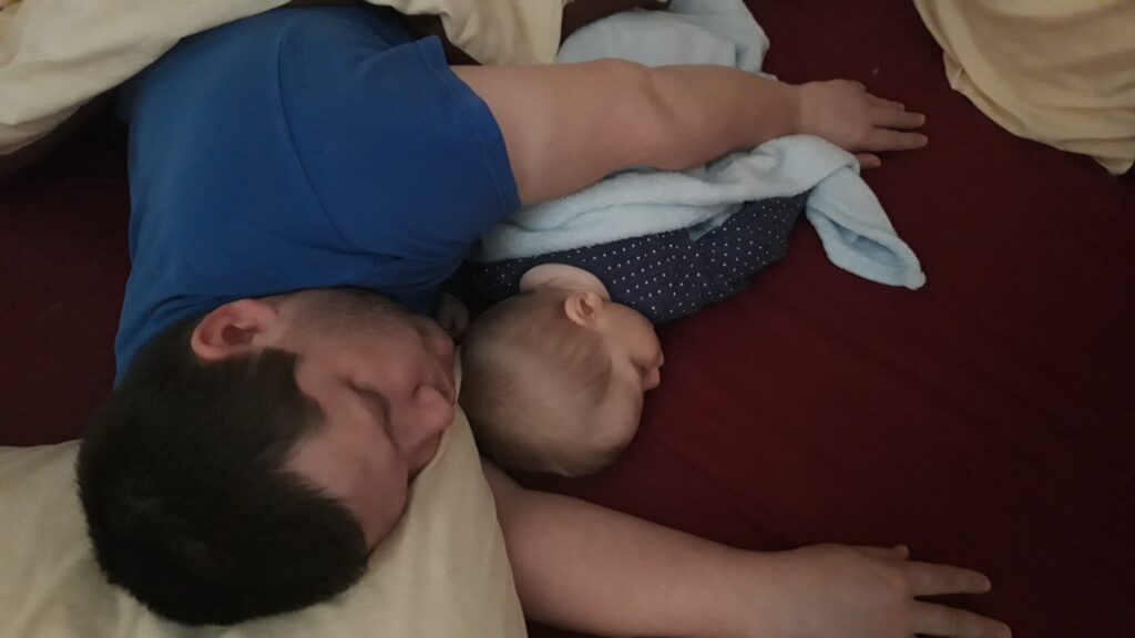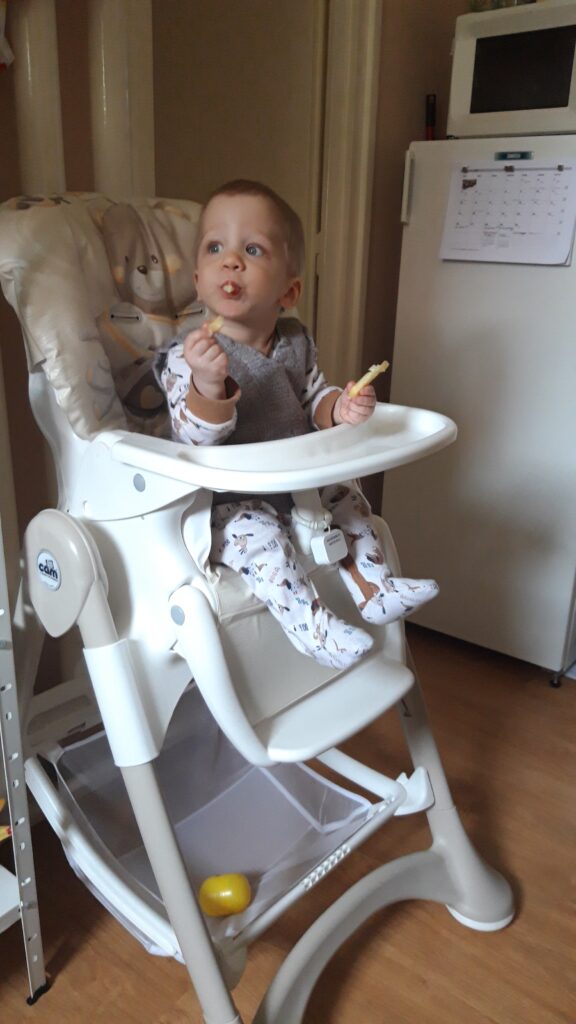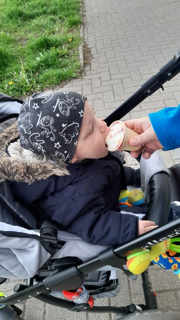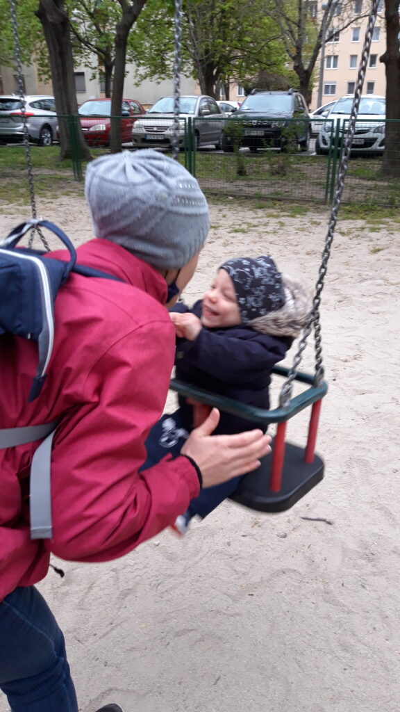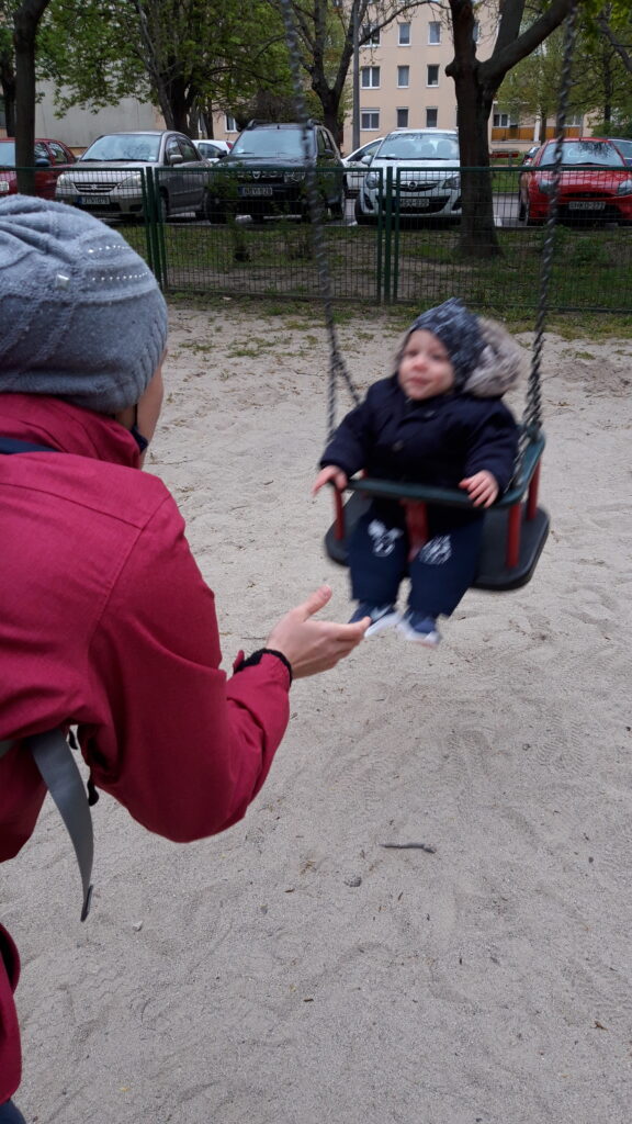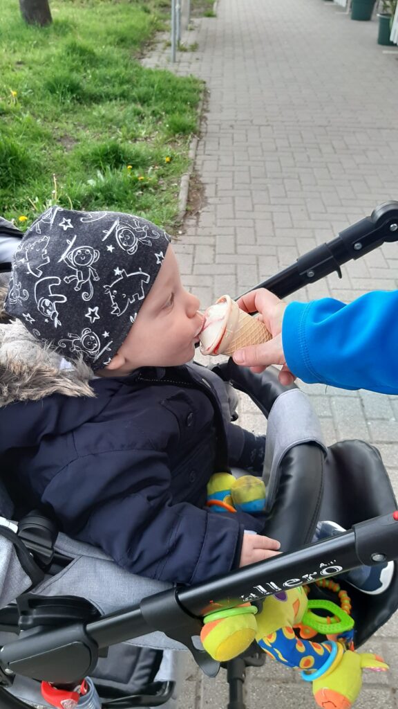 Hazaérve egy kicsit próbáltam aludni de nem ment, majd Apával is próbálkoztam, előbb majdnem Ő aludt el mint én. Ebéd után már nem voltam annyira nyűgös. Anya az Anyáknapjára nem virágot hanem sütit kért. Szeretem az ilyet mert akkor nekem is csurran csöppen finom falat, gondolnak rám is. Ebédnél is rendesen kidologztam magamat ismerkedek a kanállal való evéssel. Ebédre megkostóltam a halat is, nem volt rossz, de valami más húst jobban szeretek. délután nagy munkába voltunk rendbetetttük a lakást mert a jövő héten vendégeket várunk és előkészültünk pár dologgal. Én is rendesen besegítettem. Délután aztán a nagy takarítás után Apával elindultunk sétálni csatlakozott hozzánk Anya is. Nem maradhatott el a hintázás sem.
