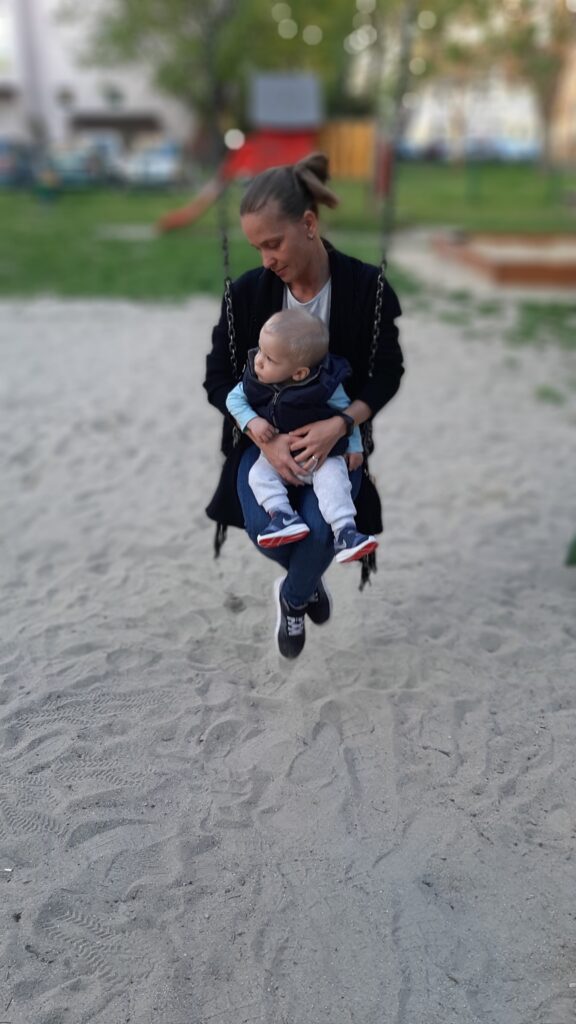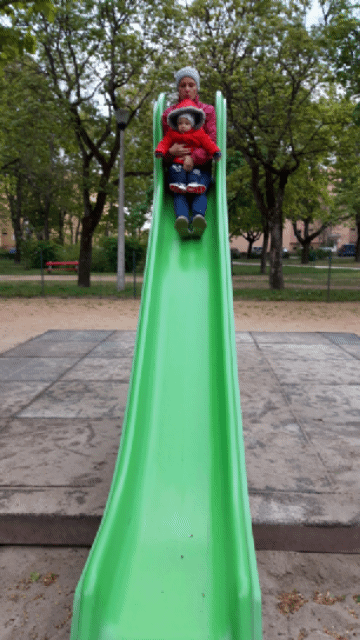 Sőt új játékot is kipróbáltunk. A csúzdát Anyával.