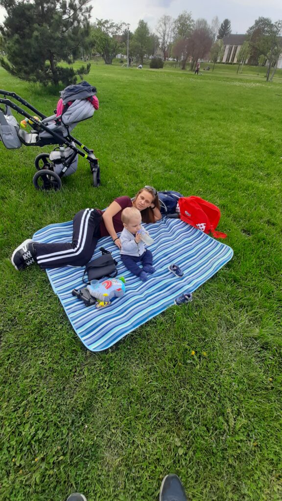 Majd sétára indultunk. Először a fagyival feltöltöttük az energia szintünket, majd igazi pikniken voltunk kinn. Annyian voltak körülöttünk, és mindenki ment, valamerre. Alig tudtam lekövetni őket. Nagyon érdekeltek a repülők amikkel játszottak nem messze a nagyok. Végül is a biztonságos pléden néztem a mindenkit.