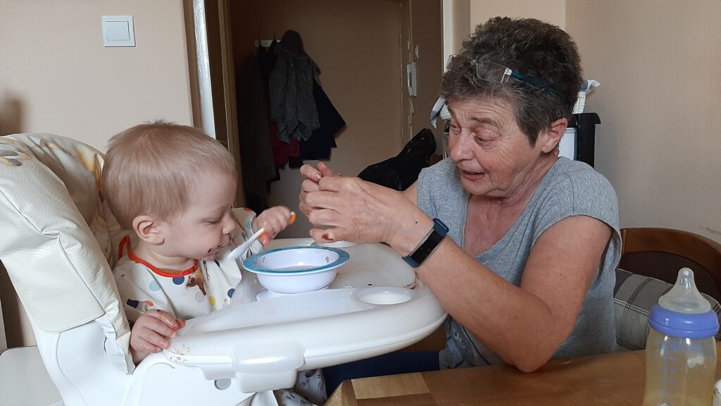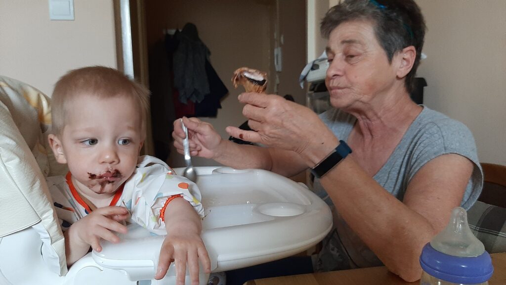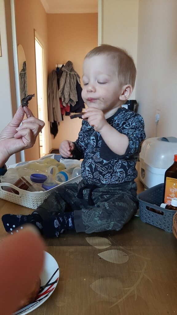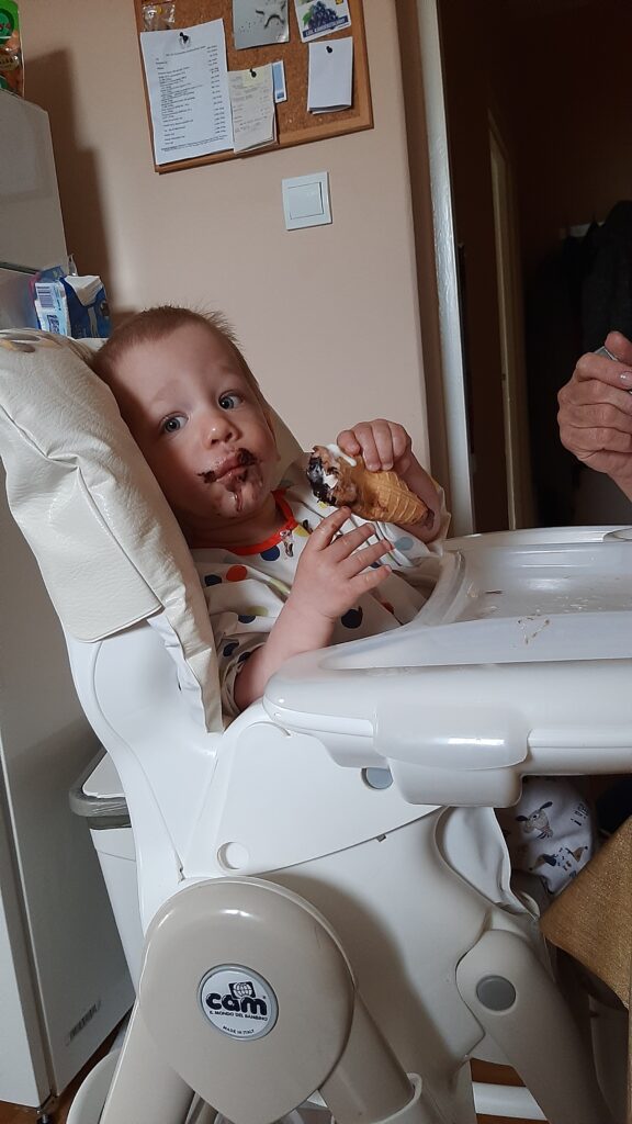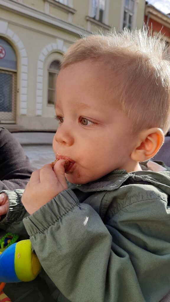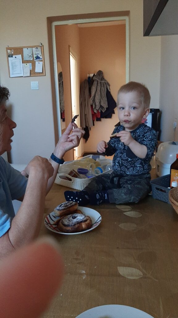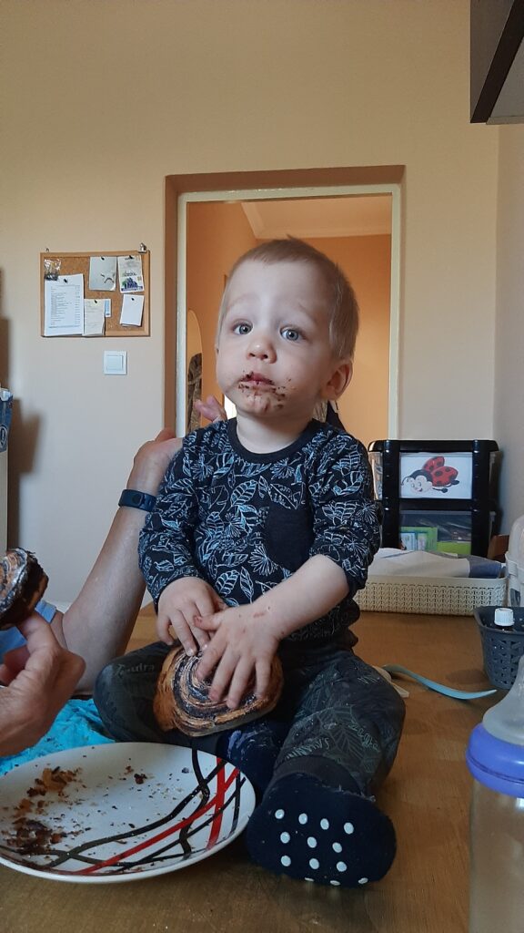 Kedden jó kis mókánk volt. Délelött a nagyival duplán reggeliztem. Betoltam az én részemet majd potyáztam nála. A kakaós csigára nem lehet nemet mondani.
