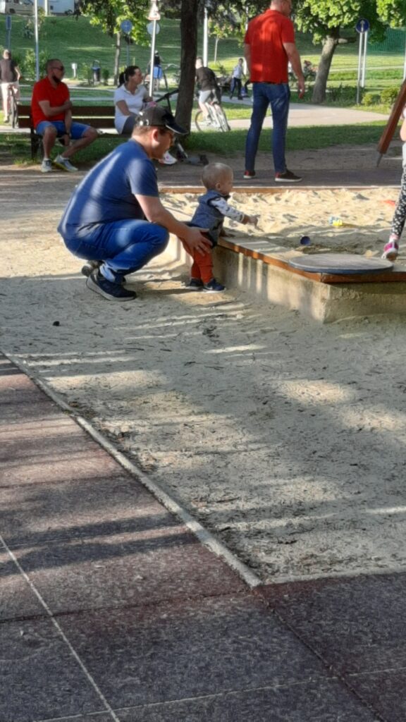 Délután parkba mentünk, megtörtént az első igazi homokozós élményem. a hintázások között. Apa meg is lepődött, hiszen állítólag őnállóan igaz csak pár másodpercre de fogás nélkül néztem a játszó nagyokat a homokzó széléről.