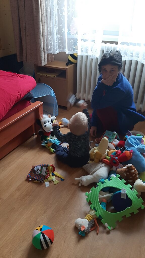 Pénteken is Apa itthon volt, amíg dologozott addig én is dolgoztam. A nagynénivel rendbe szedtük a plüssöket.