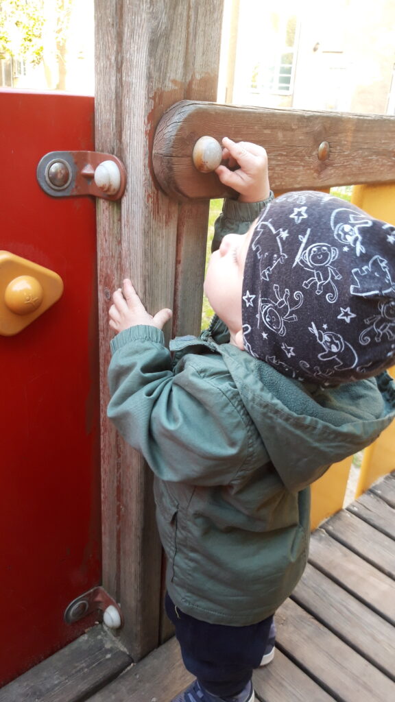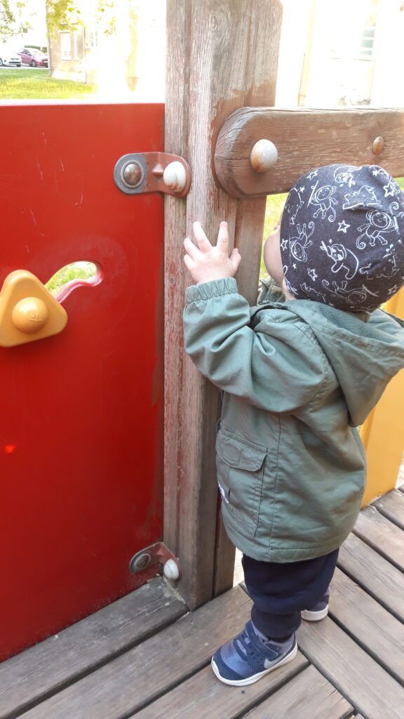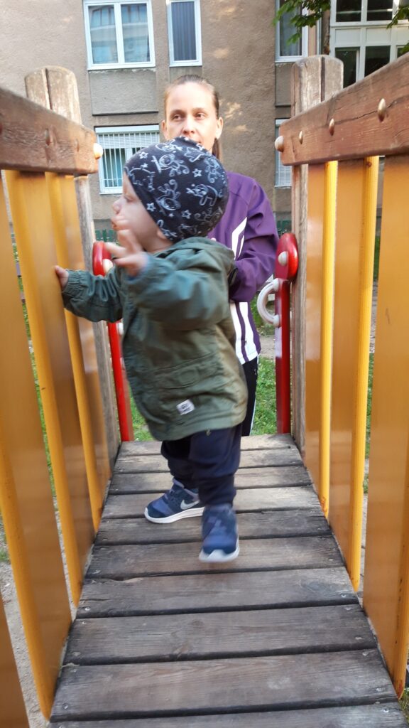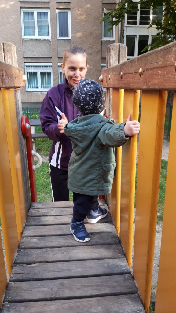 Délután a hintázás melett új mókával is megismerkedtem. Felmerészkedtünk a játszó várba. Csuda egy hely, jól el is voltunk ott.