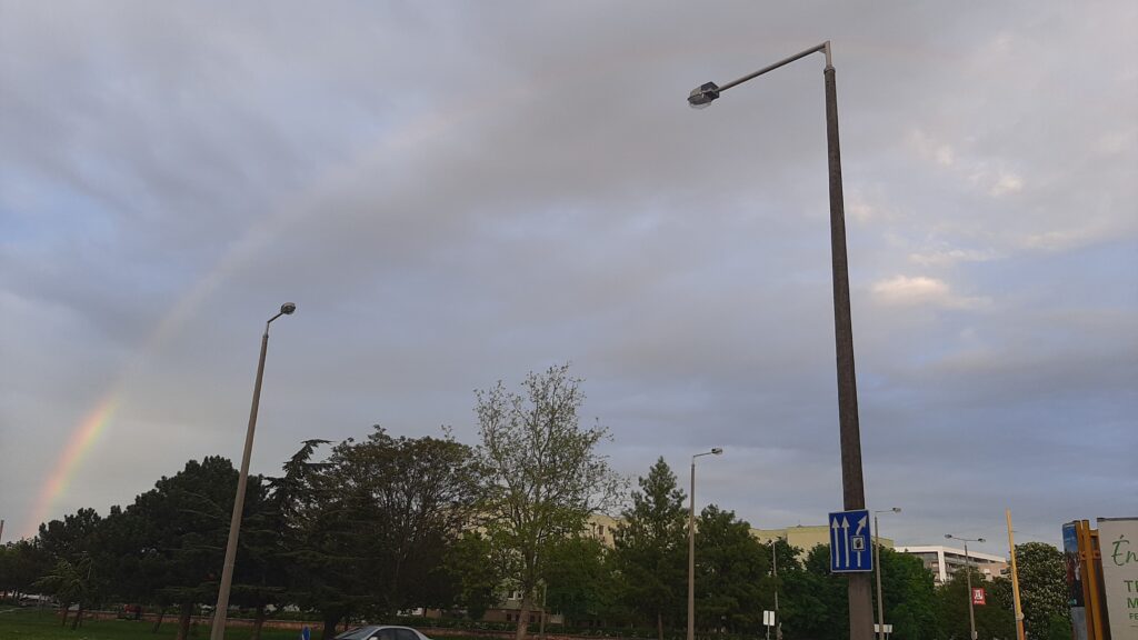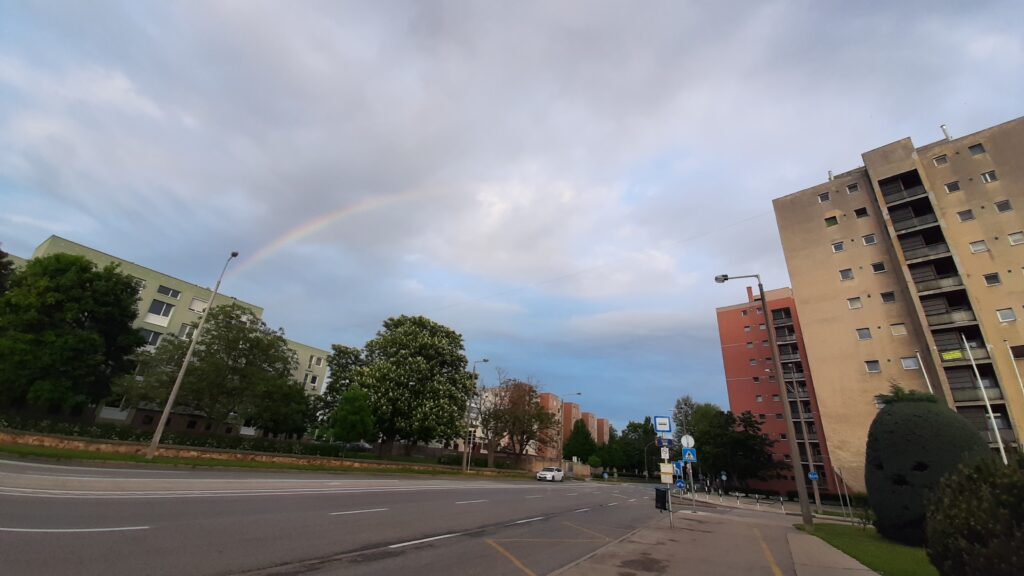 A bevásásrlás után hazaérve éhes lettem, még szerencse hogy az orrom nem salt ésa sülkrumplihoz csirke húst is éreztem és tolam be az arcomba. Jól elfáradtam, elaludam. Mire a felébredtem a nagynéni már nem volt itt nálunk. Na szép még el se búcsúztunk tőle. Délután menni akartunk sétálni, de megvártuk míg az eső eláll. Szerencsére jó időt fogtunk ki a sétához és hazafele valami furcsa színes dolgot isláttunk a felhőknél. Állítólag nem sűrűn jön elő.