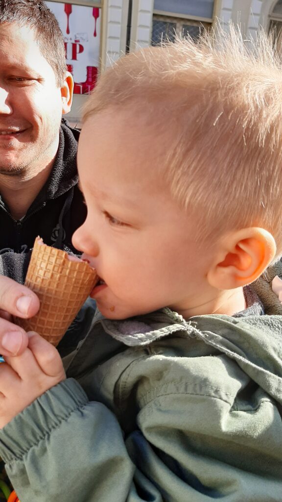 Vasárnap kicsit kipihentük a hetet. Igaz hajnalban kiköveteltem magamnak az üzemanyagot de utána jó nagyot aludtam. Délelött, elvoltunk rendezgettük sorainkat. Jól elfáradtam így Apával aludtam el. Nem nagyon akartam aludni de csak sikerült elbóbiskolni. Mire felébredtem addigra kész is volt az ebéd. A levesből jó adagot bekanalaztunk Apával, néha engedtem neki hogy Ő kanalazzon. De többször én akartam, még valahogy nem annyira megy de nem adom fel. Délután egy kis frizura igazítás után kicsit korábban mentünk mi a megszokottnál. Most új útirányt vettünk célba állítólag a belvárosba vissza jött az élet. No akkor nézzük cska meg. meg kostoljuk meg a fagyit is. Ez se maradhat el.