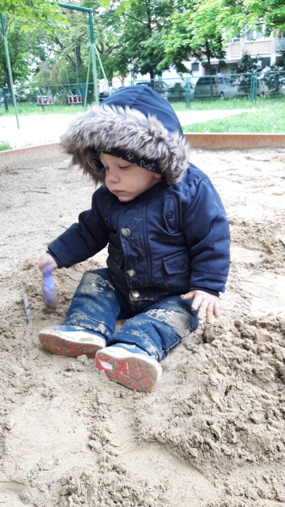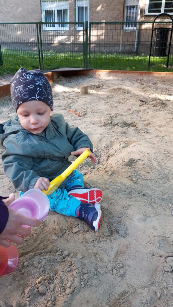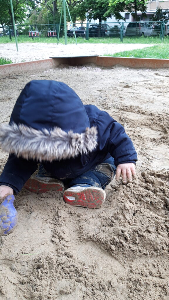 Pénteken egész jó napunk volt. Már vártam a délután mert felkészültünk, hogy megyük homokozni. Az idő is jó volt a vendéget is ide irányítottuk. Szóval elég nagy váró termem lett. Jól elvoltam míg Anya és a messzi vendége beszélgettek. Apa előásta nekem a terepet, így tudtam haladni a homokozóban.